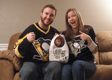 So, if you haven’t gotten it yet from the above picture and the video, Jen and I are super excited to announce that Baby Fuoco, the next great Pens fan, is due to arrive September 24, 2013. Just in time to cheer on the Pens as they start the 2013/2014 season!